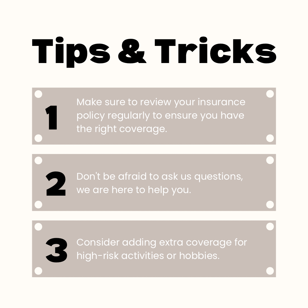 3️⃣ Consider extra coverage if you participate in high-risk activities or hobbies.